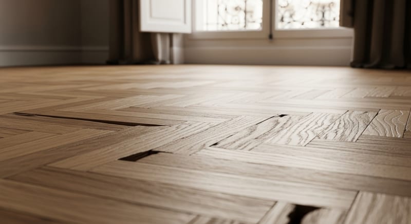 Les parquets massifs ou contrecollés avec des joints ouverts offrent des centaines de micro-cachettes. La chaleur du plancher chauffant accélère le développement des larves. Un parquet vitrifié sans fissure pose beaucoup moins de problèmes qu'un parquet ciré avec des lames disjointes.